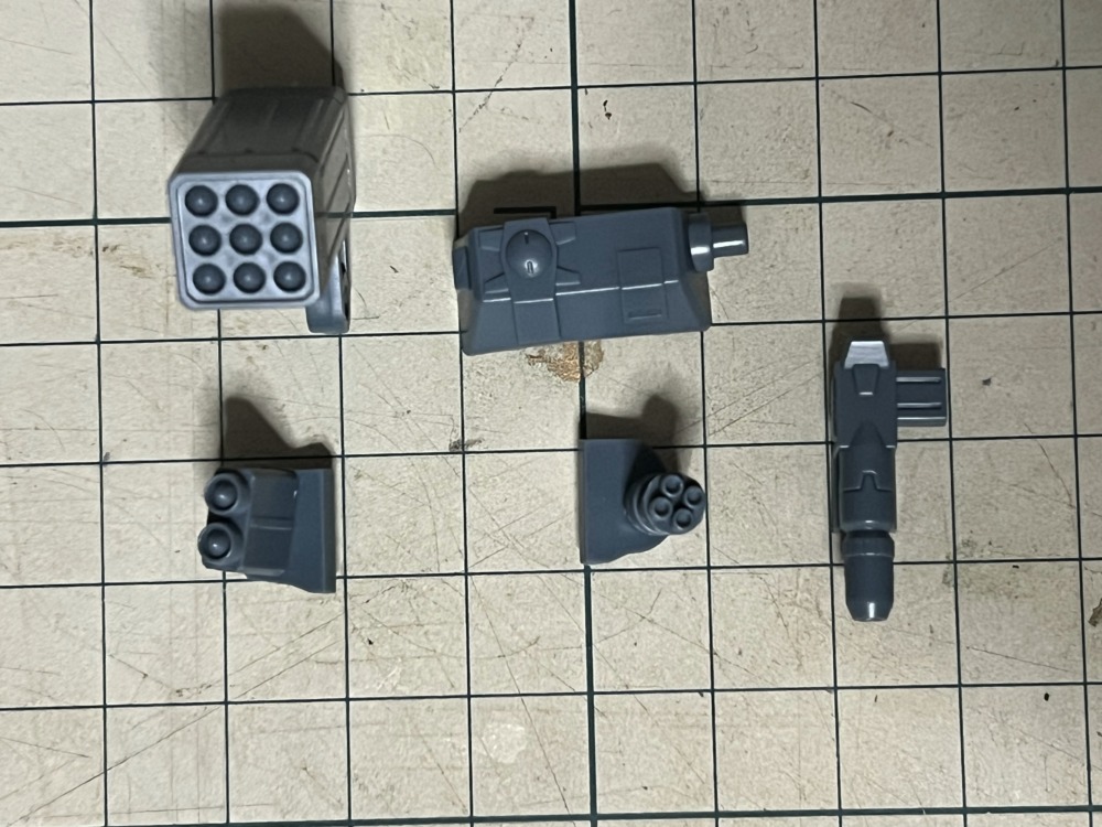 両脇のガトリングガンと2連SSMランチャーも土台になるパーツに武装部分を組み立てるだけで、各武装がシンプルかつ合わせ目処理も不要でイケそうです。
