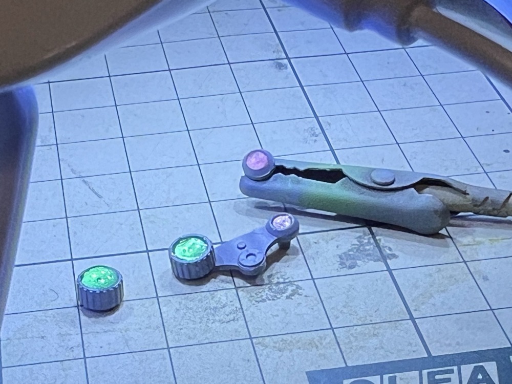 その後クリアーレジンを流し込みUVライトで硬化させます。