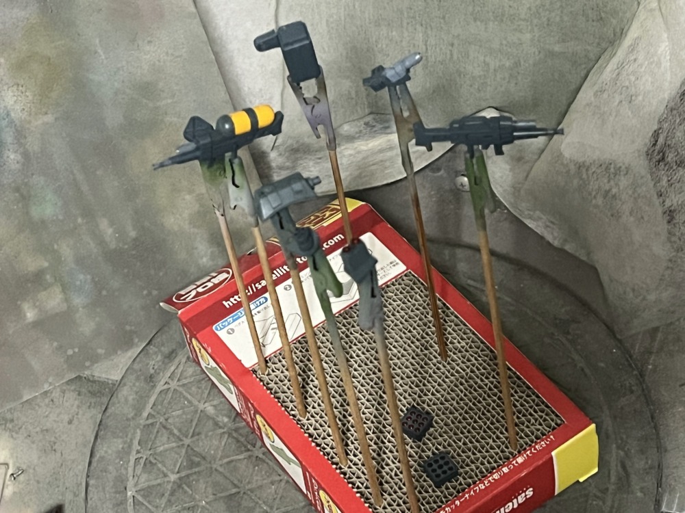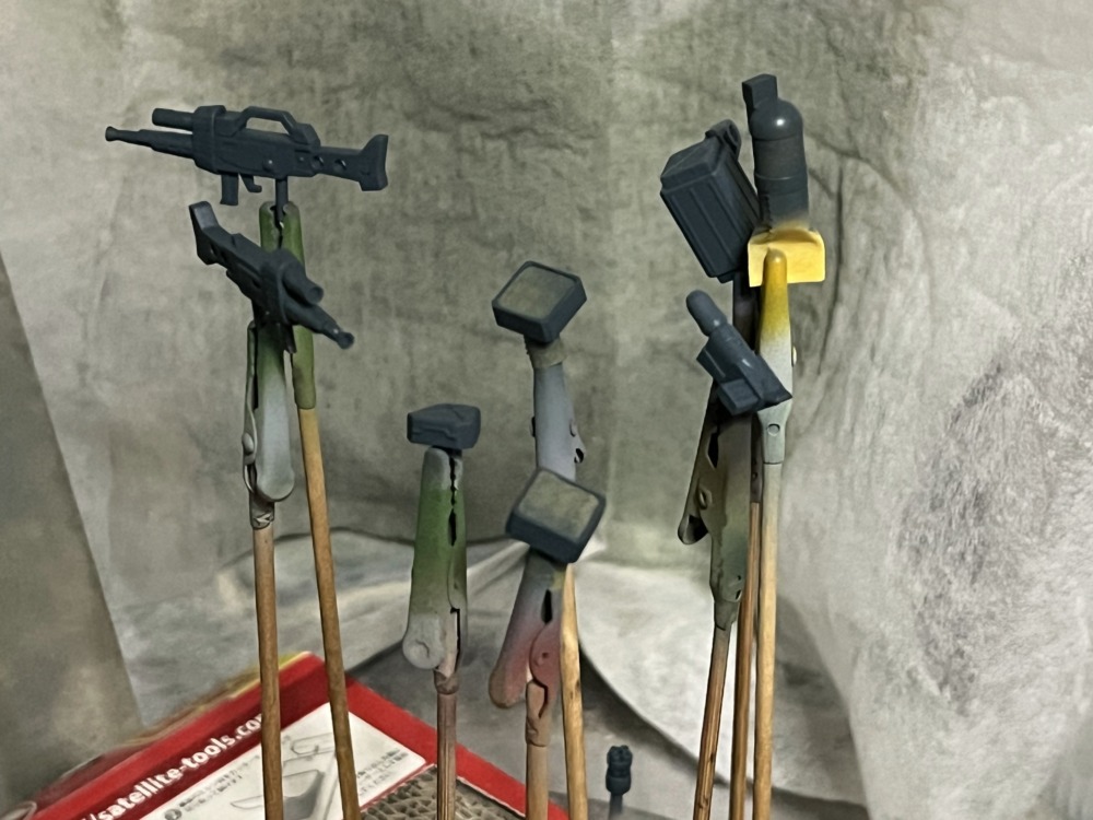 ある種、今回の目玉の武器類の塗装を進めていきます。